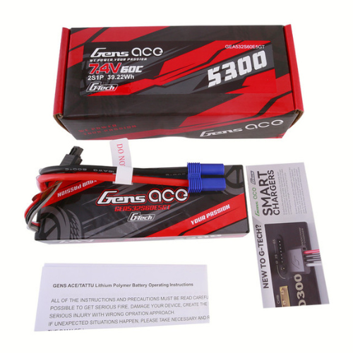 Gens Ace 5300mAh 2S1P 7.4V G-Tech HardCase Lipo Battery Pack 24# With EC5 Plug For RC Car GEA532S60E5GT