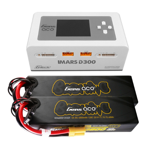 Gens Ace 6800mAh 3S 120C 11.1V G-Tech Bashing Series Lipo Battery Pack With EC5 Plug *2 + IMars D300 G-Tech Channel AC/DC 300W/700W RC Battery Charger*1 - Charger Combo GEAD300683SGT2