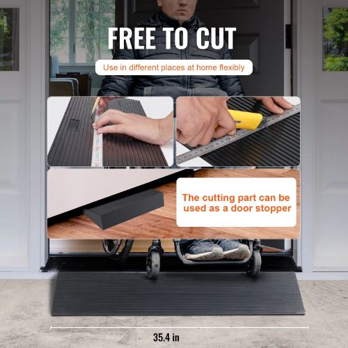 1.6" Rise Cuttable Threshold Ramp, 35.4" Wide Non-Slip Rubber Wheelchair Ramp for Doorways, Driveways, & Bathrooms