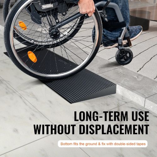 The solid threshold ramp securely fits the ground, featuring double-sided adhesive for easy installation on smooth floors, tiles, garages, doorways, roadsides, and more, ensuring stability and preventing shifting.