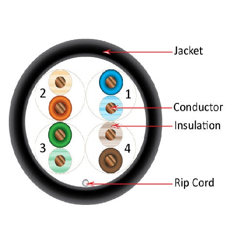 1000' 24 AWG 4 Pairs CAT5E Solid-Bare Copper CMX Outdoor Cable