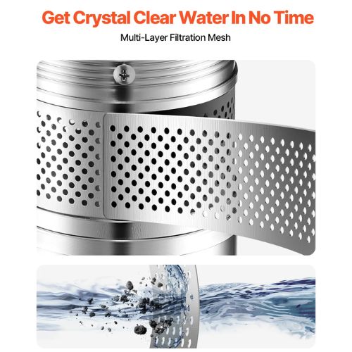 Built to last, the pump is made from stainless steel and rated IP68 waterproof. Its corrosion-resistant housing, stainless steel connections, and filtration mesh effectively block debris and resist rust—keeping the motor protected and the water clean.