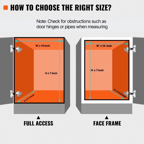 Convenient and Practical Storage Solution: Product Size: 12.6 W x 16.5 D x 3.5 H; Cabinet Installation Size: vH. Note: Check for obstructions such as door hinges or pipes when measuring. Our pull-out cabinet shelf can create larger storage space in a small cabinet; you can use it in any cabinet. You can place pots and pans, seasoning jars, food jars, cleaning supplies, spice racks, and other items, significantly saving your storage space.