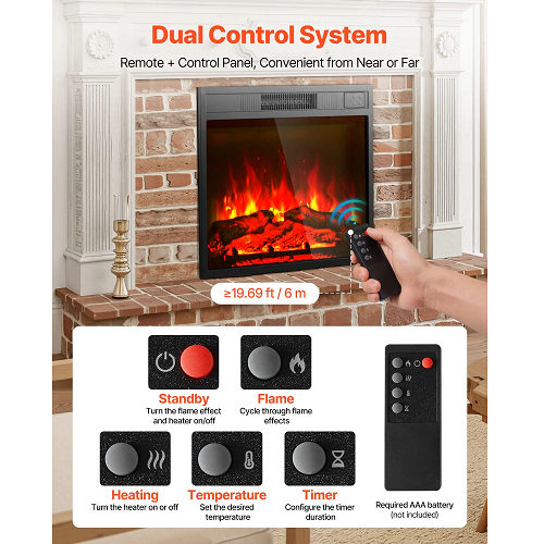 Easily operate the electric fireplace using the touch panel or wireless remote. It features a 24-hour timer, adjustable flame brightness and heat levels, and built-in overheat protection for safe, worry-free use.