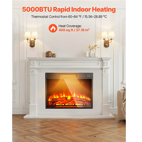 With a 5000 BTU output, this electric fireplace insert quickly heats areas up to 400 sq. ft. (37.16㎡). The 1500W high-power setting and an adjustable thermostat ranging from 62–99℉ (16.67–37.22℃) ensure consistent warmth.