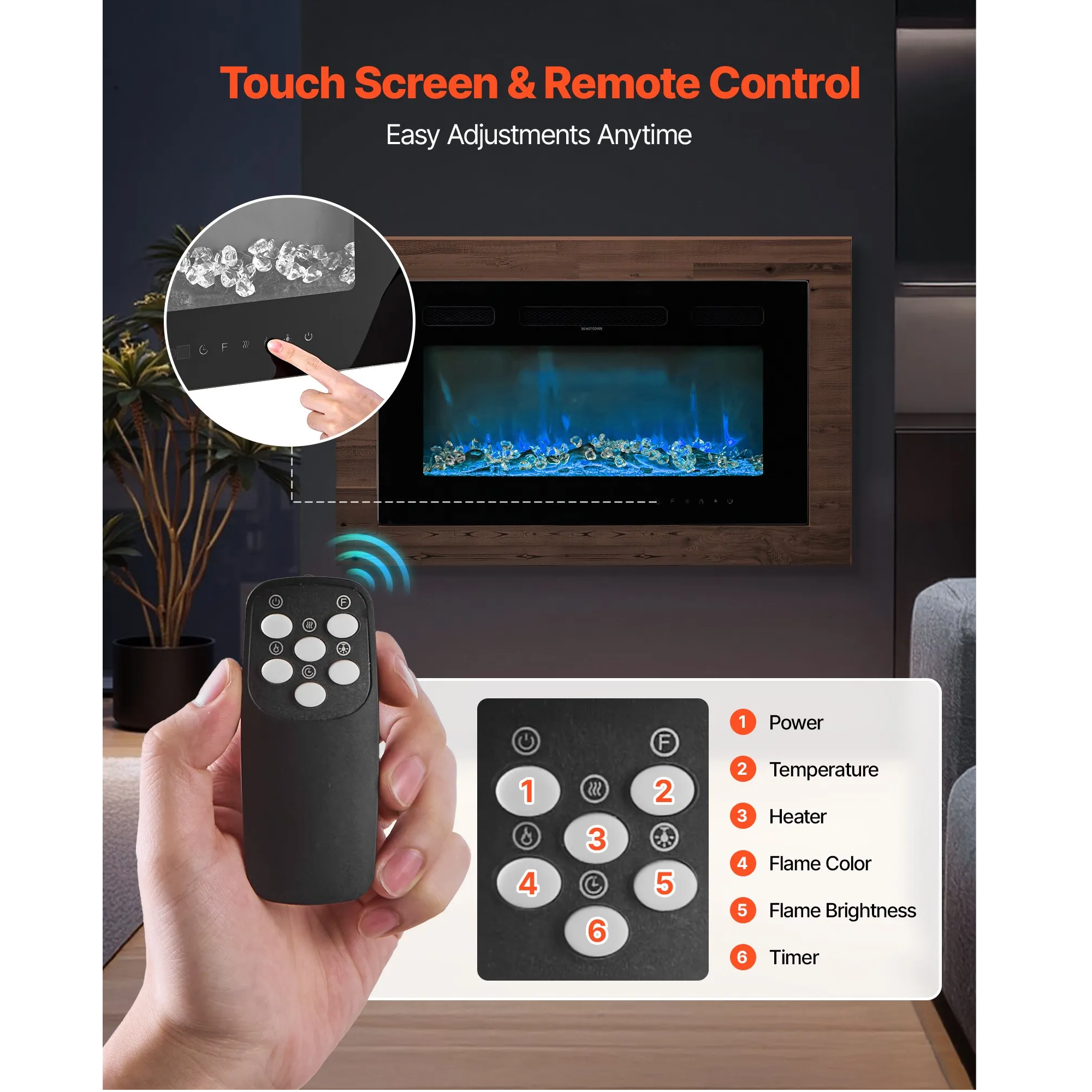 36-Inch Electric Fireplace, 1500W, Wall-Mounted & Recessed, Flat Style