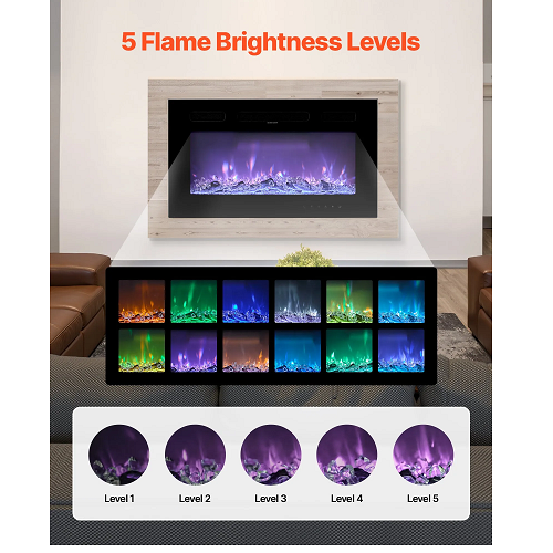 Select from 5 brightness levels and 12 flame colors—including orange, green, blue, and white—to complement any décor. Enjoy the ambiance of fire without the mess, smoke, or safety risks.