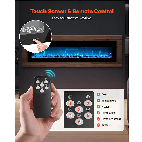 Control the flame color, brightness, and heat settings effortlessly using the touch screen or remote control. The 1–8 hour timer allows you to set automatic shutoff in 1-hour increments, saving energy and offering peace of mind.