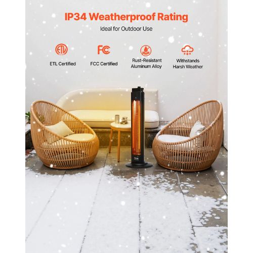 Waterproof & Dustproof: Featuring an aluminum alloy shell, this infrared space heater is corrosion-resistant and designed for long-lasting durability. With IP34 certification and ETL, FCC testing, it operates smoothly in all weather conditions without being affected by rain or snow.