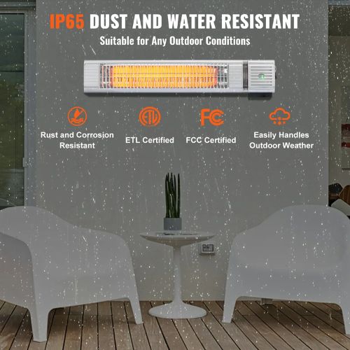 IP65 Protection: The main body is made of aluminum alloy housing, making this infrared heater rust-resistant and corrosion-resistant. Certified with IP65 protection, tested to ETL and FCC certification, it withstands snow and rain, ensuring water or moisture does not affect its functionality.