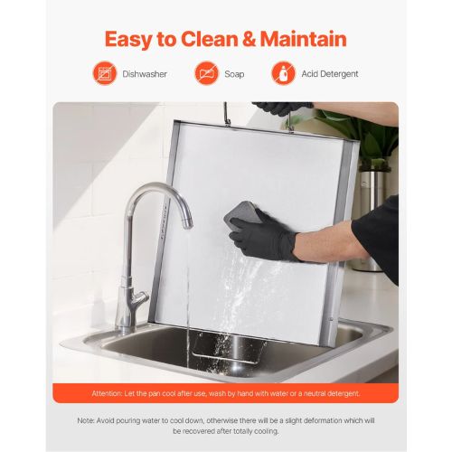 Quality Stainless Steel: Made from durable stainless steel, this griddle for gas grill can handle temperatures up to 500℉, giving you the freedom to cook at high heat. The bottom x-shaped reinforcement resists to deform