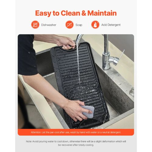 Quality Cast Iron Construction: Made from durable cast iron, this griddle for gas grill can handle temperatures up to 500℉, giving you the freedom to cook at high heat. The two ergonomic loop handles ensure a secure, comfortable grip, making it easy to move the pan safely from stovetop to table