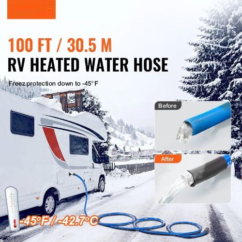 100FT Heated RV Water Hose-Self-Regulating, Antifreeze Protection to -