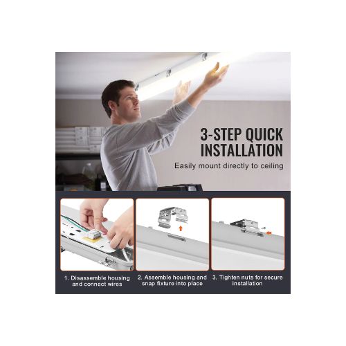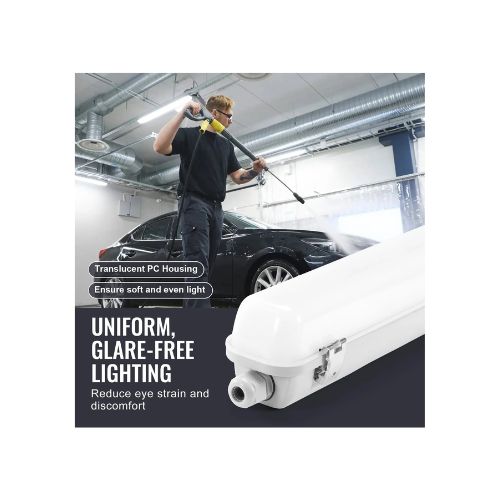 Constructed with a durable PC housing, silicone sealing gasket, and stainless steel clips to ensure reliable protection against water, dust, and harsh conditions. Ideal for parking lots, tunnels, warehouses, walk-in freezers, cold storage rooms, stables, and car wash facilities.