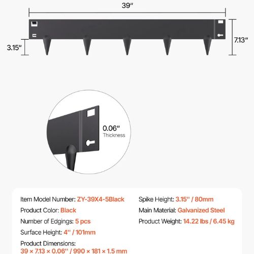 39 x 4 Inch Black Rust-Resistant Garden Edging Border Steel Landscape Edging ZY-39X4-5Black (Pack of 5)