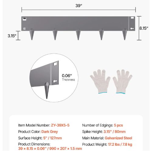 What You’ll Receive: Each set includes 5 metal flowerbed edging borders, 1 pair of installation gloves, and 1 instruction manual. The extended spiked design ensures easy installation by helping the barrier penetrate the ground with less effort. Spend more time enjoying your garden and less time maintaining it.