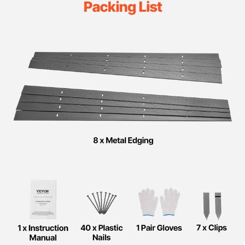 Complete Set for Easy Setup: Your set comes complete with 8 flowerbed edging borders, 1 pair of installation gloves, 40 plastic nails, 7 clips, and a clear instruction manual, allowing you to set up your edging quickly and enjoy more time in your beautiful garden.