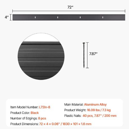 Long-Lasting Durability: Constructed from high-quality aluminum alloy with a powder-coated, rust-resistant finish, this metal landscape edging stands up to harsh weather conditions. It resists fading, cracking, and rusting, making it ideal for all-weather outdoor use.