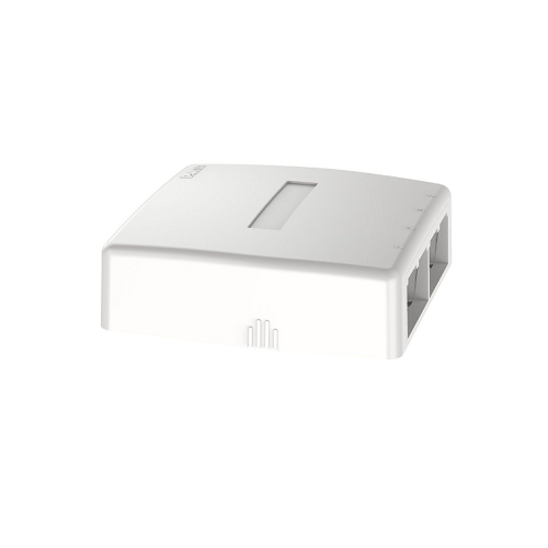Surface Mount Boxes shall have a low profile design and be available in a variety of port densities. Boxes shall accept most Mini-Com® Modules for fiber, copper, and audio/video applications. The boxes shall mount with screws, adhesive, or optional magnets. The box covers include breakouts for use with surface raceway. Cable tie slots shall be included to provide strain relief on incoming cables. Select boxes shall include a cover with a quick release feature.