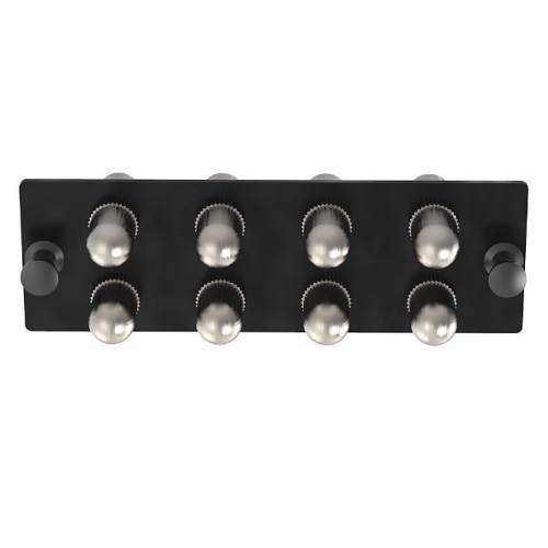 The Opticom ST fiber adapter panel is OS2 and is loaded with 8 ST simplex fiber optic adapters. The fiber optic adapters are steel bodied and has zirconia split sleeves.