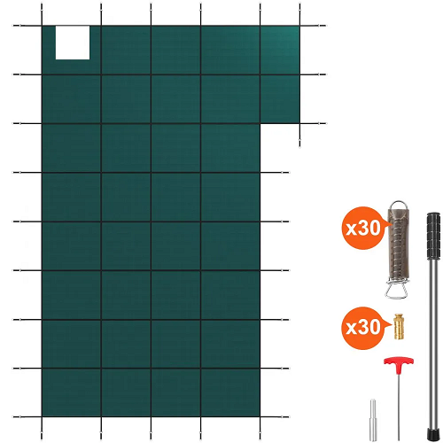 20 x 40 ft Inground Pool Safety Cover with Right Step – Mesh PP Winter Cover, Triple-Stitched, Hardware Included