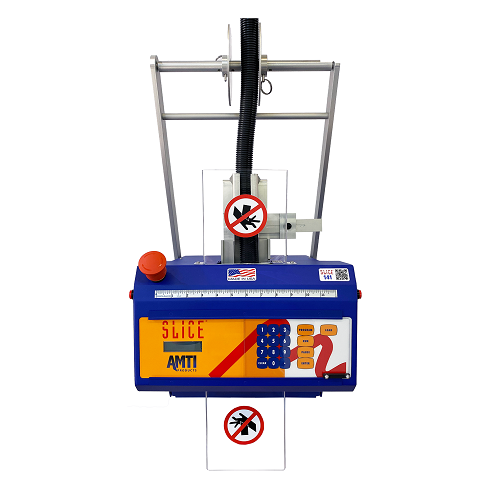 This electric/pneumatic benchtop automated measuring and cutting system, designed by AMTI, is capable of cutting a wide variety of materials, including wire (up to 10 AWG), heat shrink tubing, rubber hose, braided bus, spiral wrap, multi-conductor cable,and convoluted tubing. While it is ideal for cutting both split and non-split convoluted tubing, it has also proven highly effective for cutting hose, braided bus, multi-conductor cable, and heat shrink tubing.