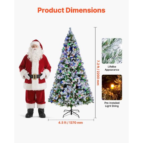 Artificial Snow Flocked Xmas Christmas Tree with 470 Colorful LED Lights (7.2FT)