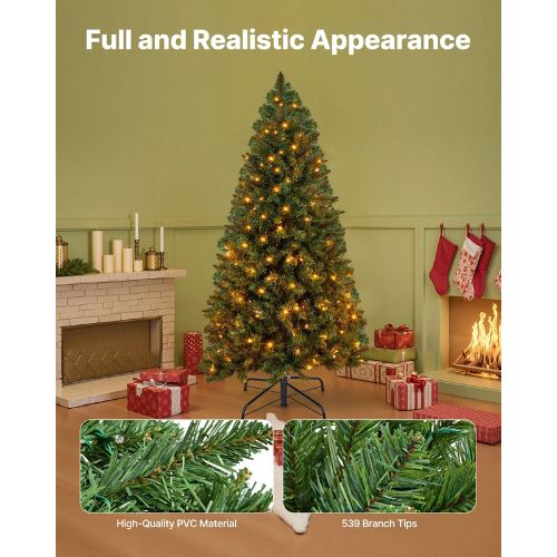 • Full, Realistic Appearance: Designed with 539 branch tips, this artificial Christmas tree offers a lush and lifelike look. Shape the bendable wire branches to achieve a fuller, more natural display.