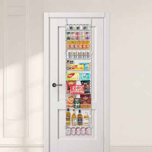 Turn wasted door space into smart storage with a high-capacity hanging rack.”