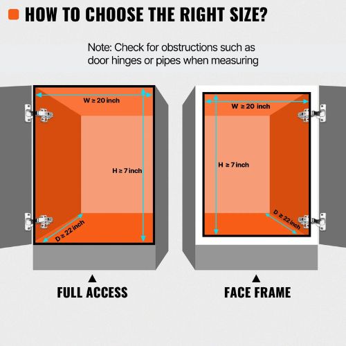 Convenient and Practical Storage Solution: Product Size: 17W×21D×3.15H; Cabinet Installation Size: 17W×21D×3.15H  Note: Check for obstructions such as door hinges or pipes when measuring. Our pull-out cabinet shelf can create larger storage space in a small cabinet; you can use it in any cabinet. You can place pots and pans, seasoning jars, food jars, cleaning supplies, spice racks, and other items, significantly saving your storage space.