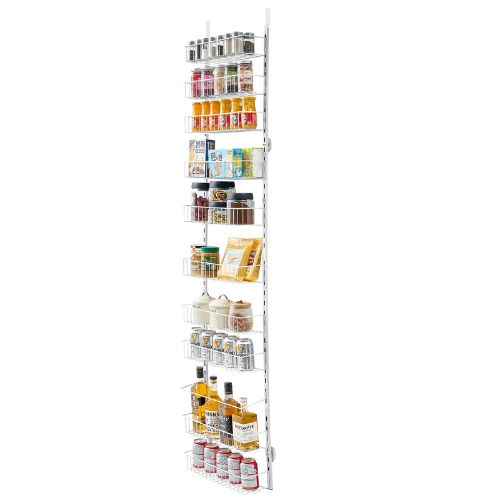 Fits Most Doors: This over the door pantry organizer is compatible with doors that have a panel thickness of no more than 2 in / 50 mm, and the door gap must be greater than 0.06 in / 1.5mm. There should also be at least 7.1 in / 180mm of clearance between the door and the pantry shelf. Please check your cabinet door dimensions to ensure a proper fit and smooth door closure