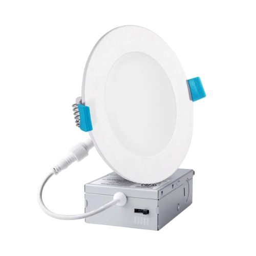 Ultra-slim, 5CCT Selectable, recessed downlight is designed to give you the option between 2700K/3000K/3500K/4000K/5000K, all conveniently in one downlight. Its spring-action clips allow for easy, hassle-free installation with no need for housing, reducing maintenance worries. At 600 Lumens and 10 Watts (60 Watt equivalent) input power, the 4” downlight has an average of 50,000 hours of life and is ETL and JA8 certified. The LED Downlight is IC-rated, recessed, and best suited for low residential ceilings working on AC 120V. Its edge-lit LED technology guarantees a long life of uniform light distribution.