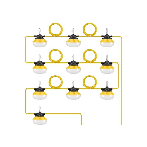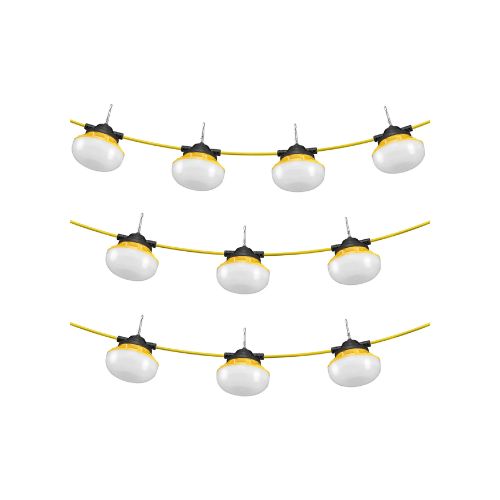 Delivering 100W of power across a 100 ft string, these construction lights provide bright 5000K daylight illumination that reveals true object colors for reliable indoor and outdoor visibility.