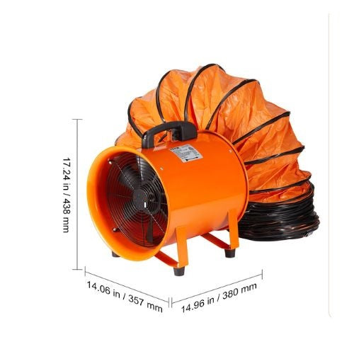 12 Inch 3278RPM Speed Portable Ventilator Fan with 16.4ft Ducting Hose