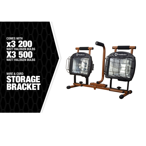 • Comes with (3) 200-watt and (3) 500-watt halogen bulbs.