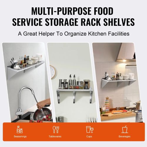 18 X 72 In Stainless Steel Shelf Wall Mounted Floating Shelving with Brackets for Kitchen
