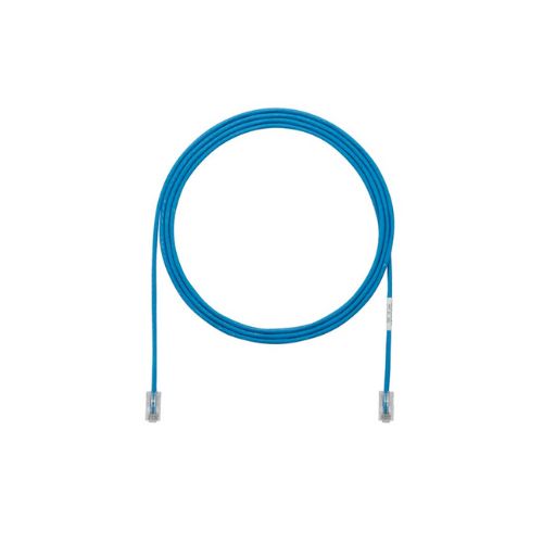 • The TX5e Cat 5e UTP Patch Cord is a 2-meter, 0.150-inch (3.8mm) diameter, blue cord constructed of 28 AWG, unshielded, twisted pair, stranded, CM cable with Pan-Plug modular plugs.