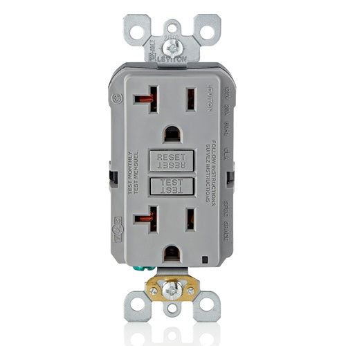 Leviton 20A 125V SmartlockPro GFCI Receptacle Gray GFNT2-GY