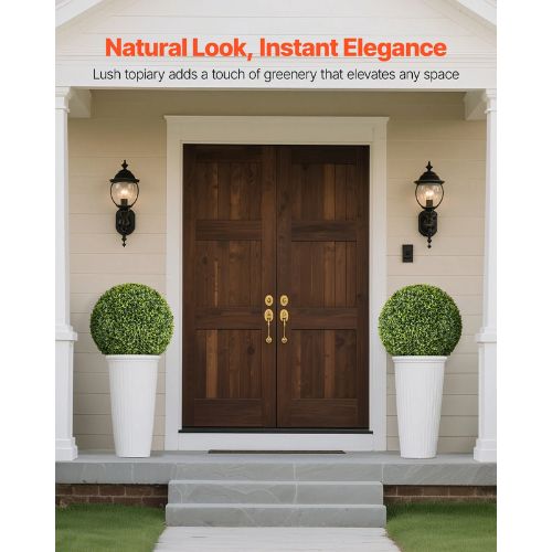 Realistic & Lifelike Look: These 23-inch artificial topiary trees feature lush, dense PE leaves with natural color variations and realistic textures. The reinforced trunk and neatly shaped foliage create an elegant, stays beautiful year-round.