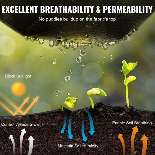 Soil-Friendly and Highly Permeable: VEVOR landscaping fabric stands out with its exceptional permeability and breathability. It allows water and air to pass through freely, promoting plants breathing and locking in soil nutrients. Say goodbye to water loss and soil erosion; let your plants thrive in the healthy environment.