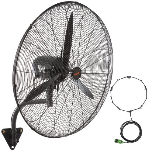 30″ Wall-Mount Misting Fan | 9500 CFM High-Velocity Waterproof Oscillating (Black)