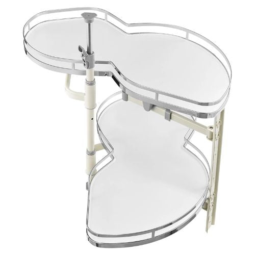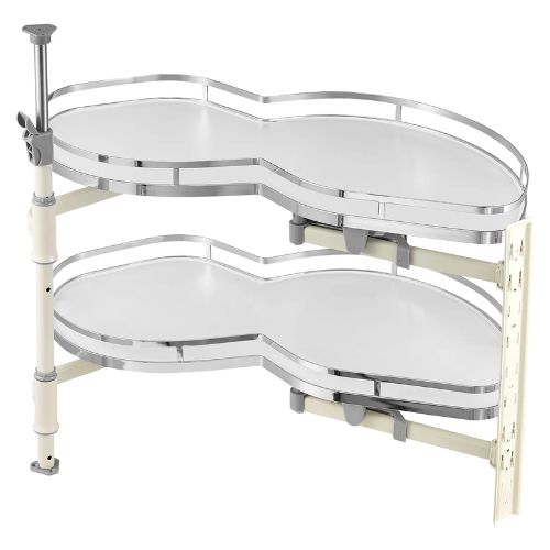 Large Capacity Storage: The dual-layer kitchen blind corner cabinet organizer offers an extra-large capacity, with each basket measuring 31.5x15.75x2.36 inches / 800x400x60 mm, accommodating bowls, plates, spices, and jars.
