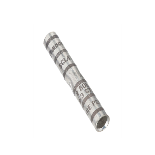 Copper butt splice, long barrel, #4 – #3 AWG STR, #2 AWG SOL wire. 4 AWG wire, which is a very thick wire commonly used in high-amperage electrical applications, a long-barrel butt splice would be necessary to ensure a proper connection. This type of splice is typically crimped onto the wires using a specialized tool to compress the metal barrel around the wires, creating a tight and secure connection. It's important to use the appropriate size and type of splice for the wire gauge to ensure safety and reliability in electrical systems.