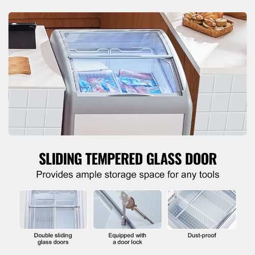 Sliding Glass Doors: Each mobile glass top chest freezer is designed with glass doors that can slide open in either direction, making it convenient for you to access the ice cream. The doors are equipped with locks for added security.
