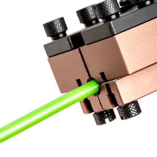• Guide blocks hold the cable in place for accurate and precise cable slitting.