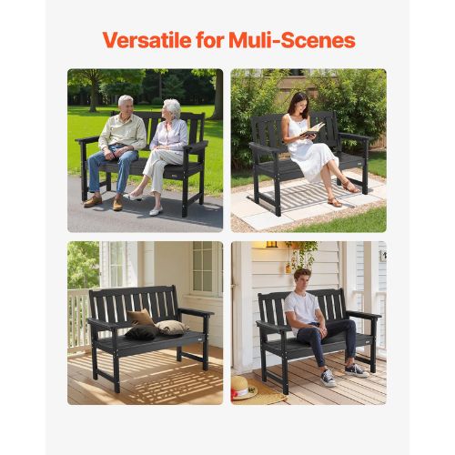 50.5-Inch Outdoor Bench 800 lbs Capacity Weatherproof Plastic Frame with Backrest and Armrests – Ideal for Patio Garden Yard Black