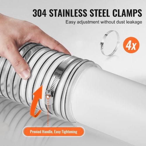 Complementary 304 Stainless Steel Clamp: The dust collection hose includes four 304 stainless steel clamps, which provide extra strength and stability for a secure, leak-free connection, ensuring extra ease of use and peace of mind.