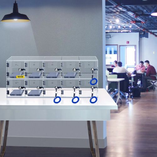 5x2 Cell Phone Storage Locker 10 Slots Acrylic Material with Door Locks and Keys for Office Classroom Gym Box Clear