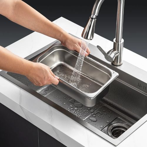 •Sturdy and Durable: Our hotel steam pan is made with 0.8mm thick stainless steel, making it sturdy, durable, and rust-resistant. The unique anti-stacking groove design enhances structural strength, making the pan more robust and easy to separate when stacked.