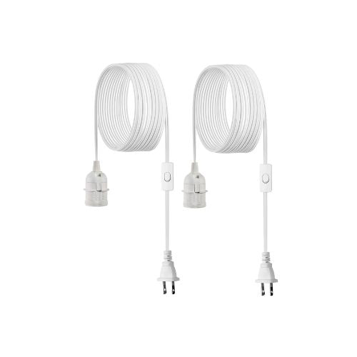Easy Install Decorative E26 Plug In Light Socket Cord Set 16 ft Pendant Extension Kit 2 Pack